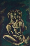 2009Licht erotisch werk. Ingelijst in houten lijst met goudkleurige nerven door lijstenmaker.